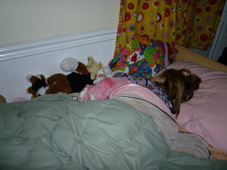 Maile has to have her 'stuffies' and they have to have their blanket covering them.